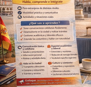 Aprende español con lecciones enfocadas en situaciones cotidianas y culturales.